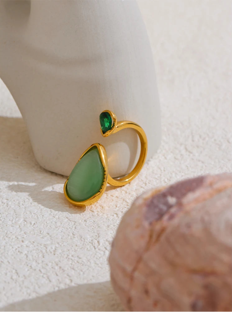 Emerald Drops – Adjustable Green Natural Stone Ring