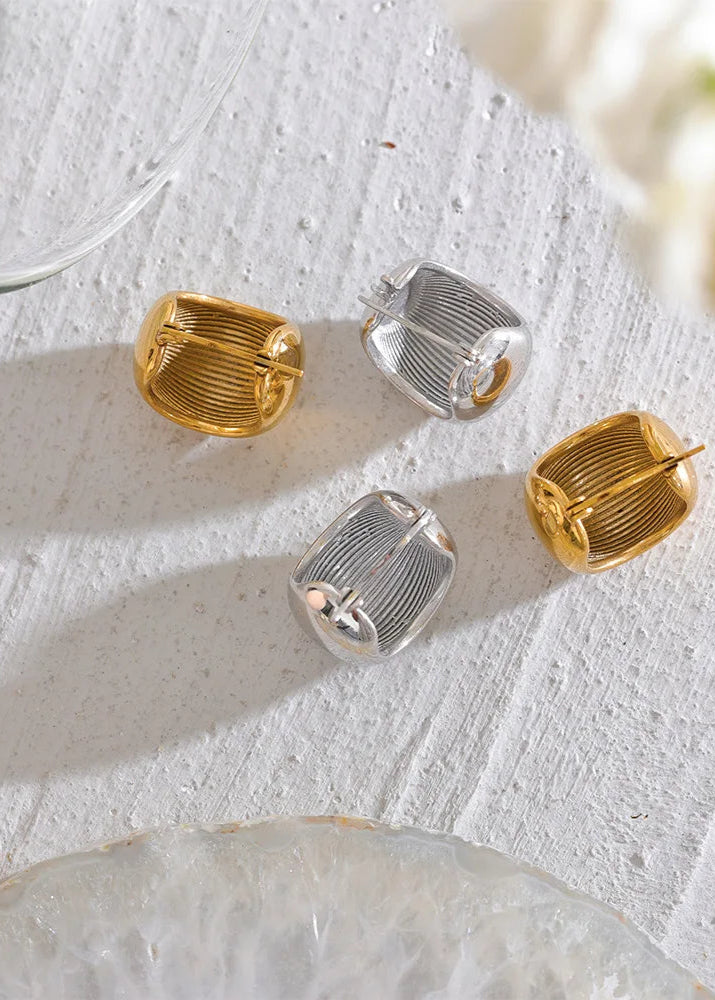 316L stainless steel with 18K PVD gold plating, water-resistant, hypoallergenic, and tarnish-free.