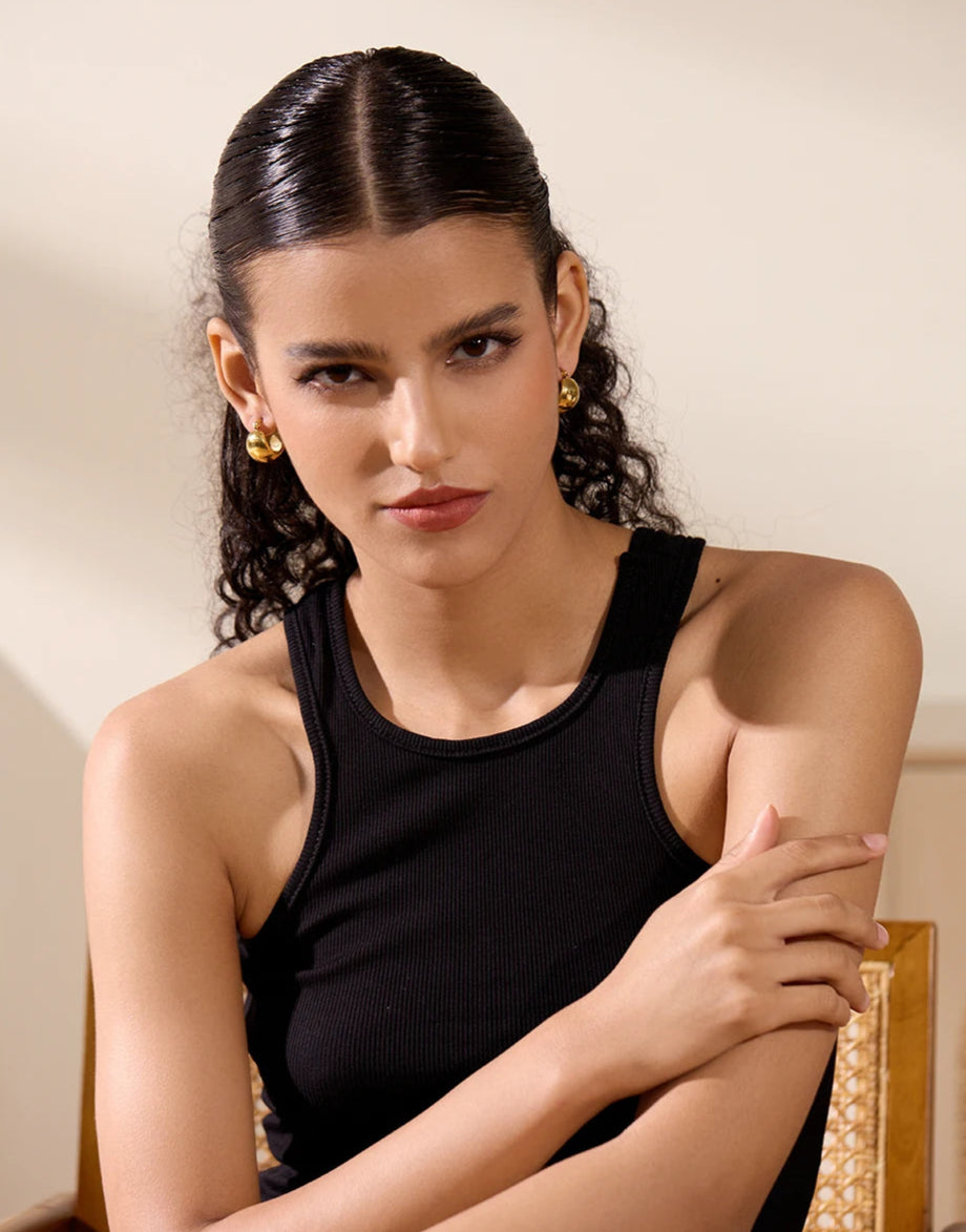 Rounded chunky hoop design with a secure clasp, ensuring comfort and style all day long.