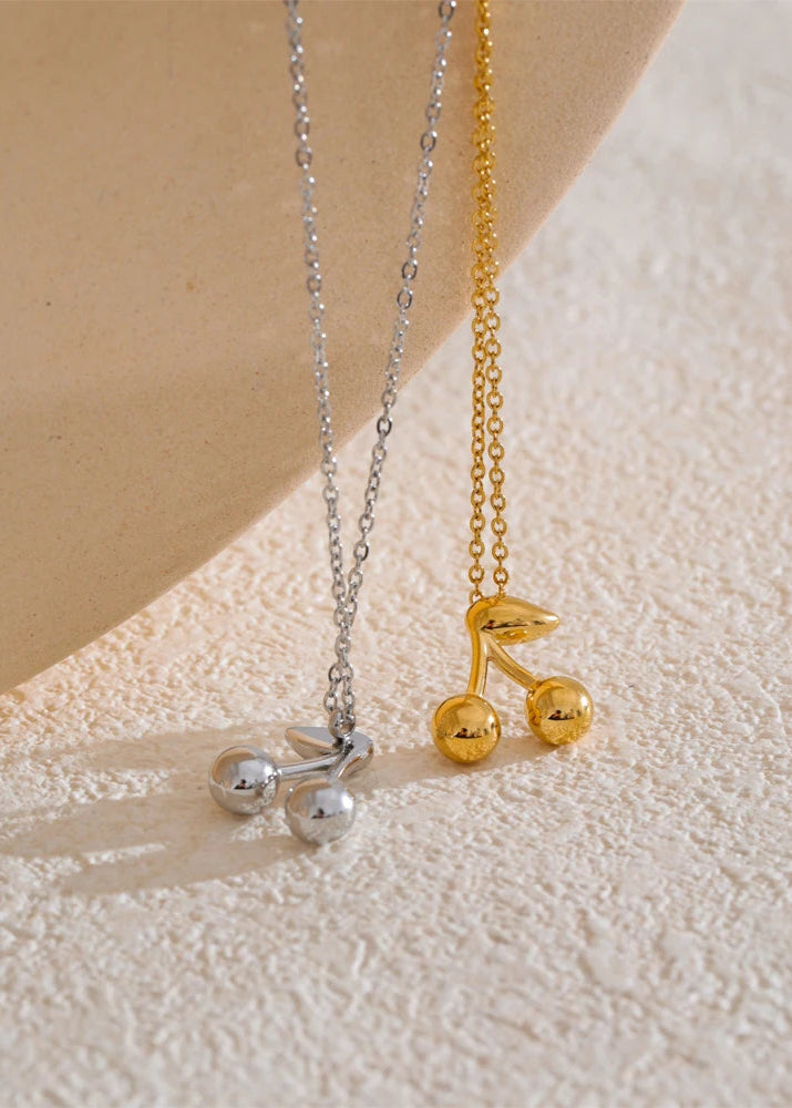 Aço inoxidável 316L com revestimento em ouro PVD 18K, com um pingente de cereja elegante e minimalista.